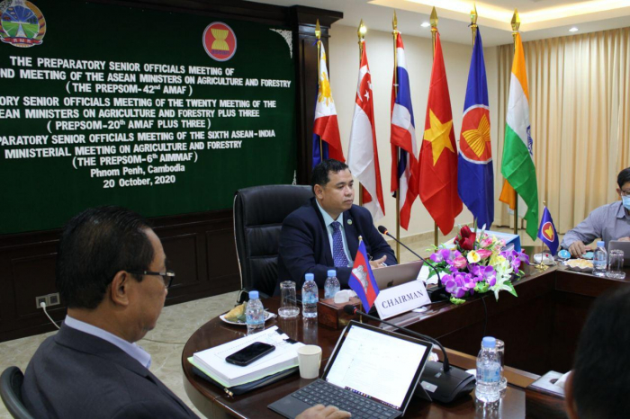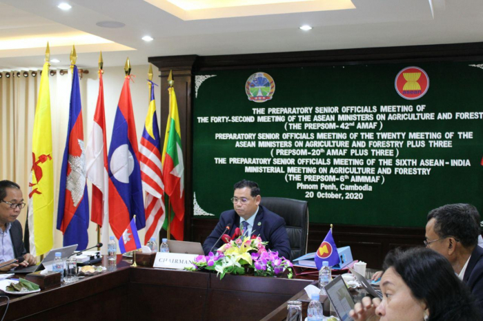 កាលពីថ្ងៃអង្គារ ៤កើត ខែកត្តិក ឆ្នាំជូត ទោស័ក ព.ស ២៥៦៤ ត្រូវនឹងថ្ងៃទី២០ ខែតុលា ឆ្នាំ២០២០ លោកបណ្ឌិត ព្រំ សុមានី ប្រធាននាយកដ្ឋានសហប្រតិបត្តិការអន្តរជាតិ និងជាប្រធានឧត្តមមន្រ្តីកសិកម្ម និងព្រៃឈើអាស៊ាននៃកម្ពុជា បានដឹកនាំកិច្ចប្រជុំពីចម្ងាយ ស្តីពី The PrepSOM-42nd AMAF, PrepSOM-20th AMAF Plus Three and The PrepSOM-6th AIMMAF