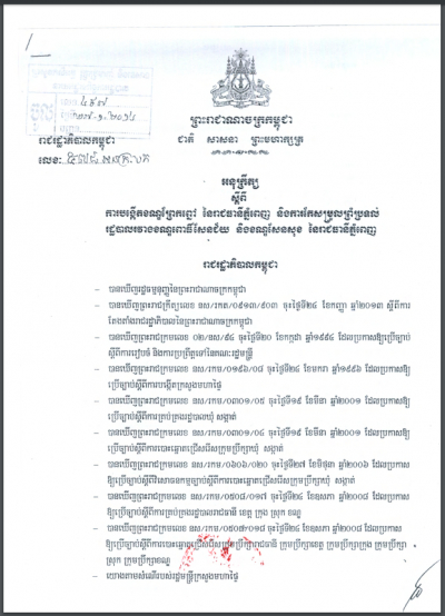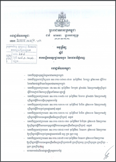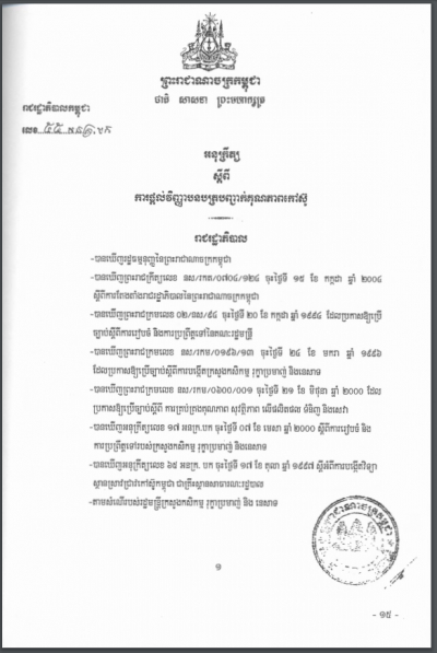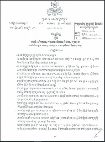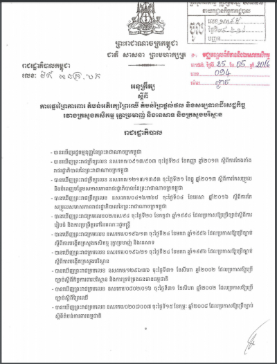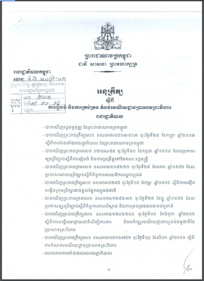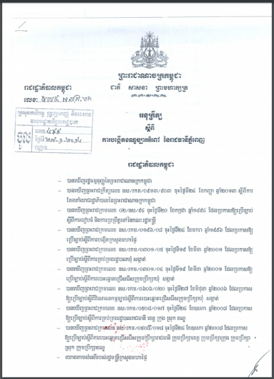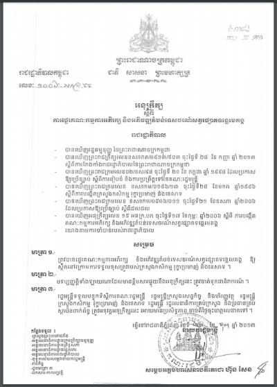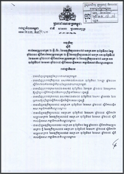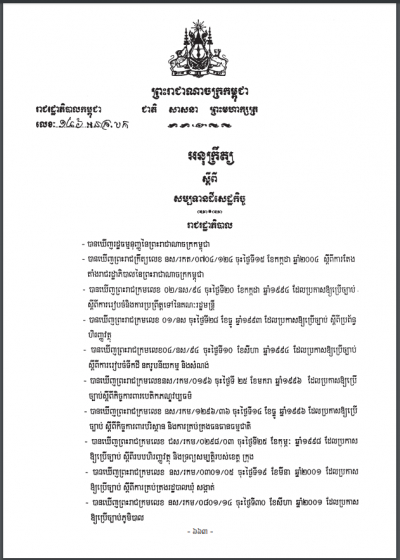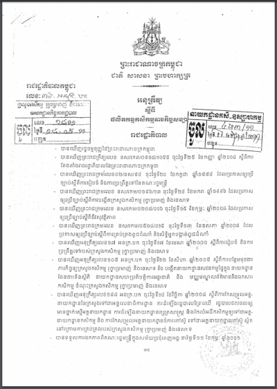 អនុក្រឹតស្តីពី ការកែសម្រួលមាត្រា២ ថ្មី(ពីរ) នៃអនុក្រឹតលេខ១៧៩ អនក្រ.បក ចុះថ្ងៃទី៣០ ខែធ្នូ ឆ្នាំ២០១០ ស្តីពីការកែសម្រួលមាត្រា២ ថ្មី នៃអនុក្រឹតលេខ៤៨ អនក្រ.បក ចុះថ្ងៃទី០៥ ខែឧសភា ឆ្នាំ២០០៨ ស្តីពីការកែសម្រួលមាត្រា២ នៃអនុក្រឹតលេខ៦៥ អនក្រ