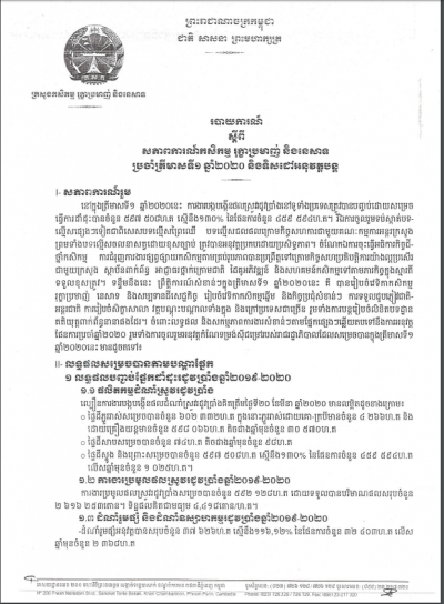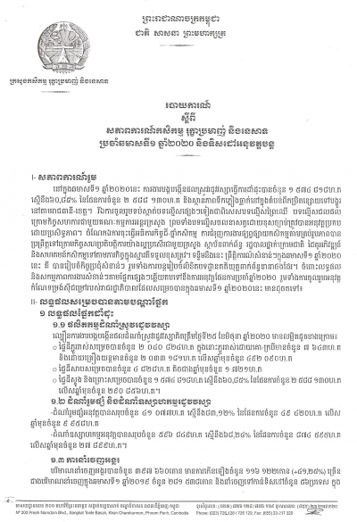 របាយការណ៍ស្តីពី សភាពការណ៍កសិកម្ម រុក្ខាប្រមាញ់ និងនេសាទ ប្រចាំឆមាសទី១ ឆ្នាំ២០២០ និងទិសដៅអនុវ​ត្តបន្ត