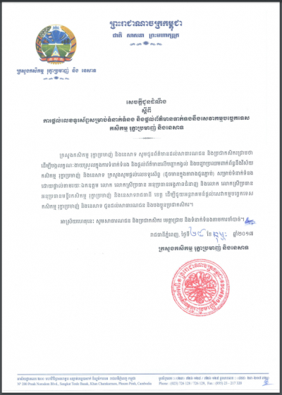 សេចក្តីជូនដំណឹងស្តីពី ការផ្តល់លេខទូរស័ព្ទសម្រាប់ទំនាក់ទំនង និងផ្តល់ព័ត៌មានទាក់ទងនឹងសេវាកម្មបច្ចេកទេស កសិកម្ម រុក្ខាប្រមាញ់ និងនេសាទ