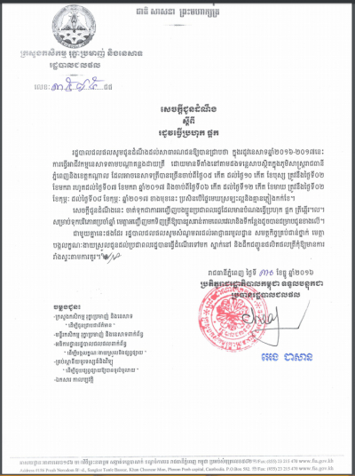 សេចក្តីជូនដំណឹងស្តីពីការប្រឡងជ្រើសរើសមន្រ្តីក្របខណ្ឌថ្មីនៃក្រសួងកសិកម្ម រុក្ខាប្រមាញ់ និងនេសាទ សម្រាប់ឆ្នាំ២០១៦