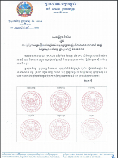សេចក្តីជូនដំណឹងស្តីពី ការប្រើប្រាស់ត្រាថ្មីរបស់មន្ទីរកសិកម្ម រុក្ខាប្រមាញ់ និងនេសាទ រាជធានី ខេត្ត នៃក្រសួងកសិកម្ម រុក្ខាប្រមាញ់ និងនេសាទ