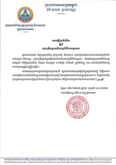 សេចក្តីជូនដំណឹងស្តីពីរដូវបិទនេសាទឆ្នាំ២០២៣