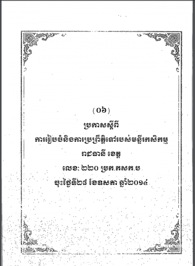 ប្រកាស ស្តីពីការរៀបចំ និងការប្រព្រឹត្តទៅ របស់មន្ទីរកសិកម្មរាជធានី ខេត្ត