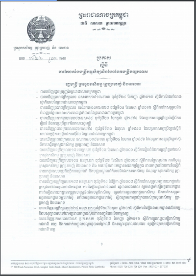 ប្រកាសស្តីពីការនិរាករណ៍ប្រកាសតែងតាំងមន្ត្រីរាជការ