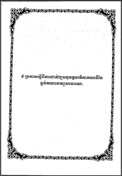 ប្រកាសស្តីពី ការដាក់ឲ្យអនុវត្តមាតិកាគណនីនៃប្លង់គណនេយ្យសាធារណៈ