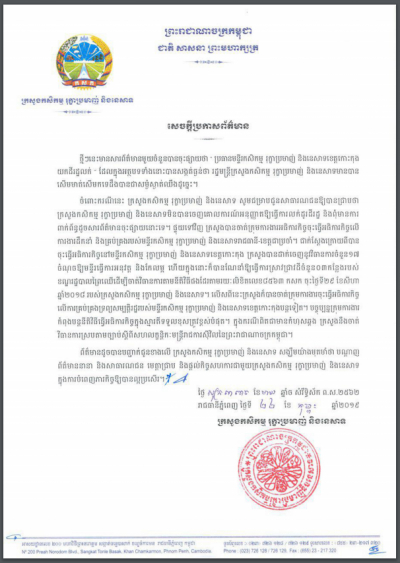 សេចក្តីប្រកាសព័ត៌មាន