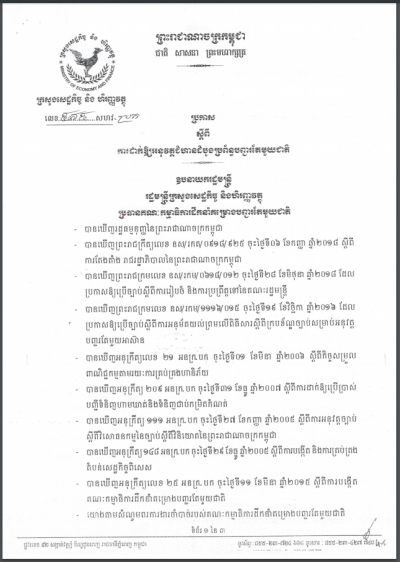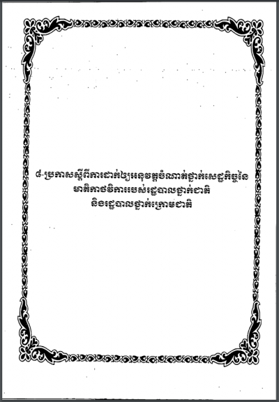 ប្រកាសស្តីពី ការដាក់ឲ្យអនុវត្តចំណាត់ថ្នាក់សេដ្ឋកិច្ចនៃមាតិកាថវិការបស់រដ្ឋបាលថ្នាក់ជាតិនិងរដ្ឋបាលថ្នាក់ក្រោមជាតិ