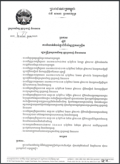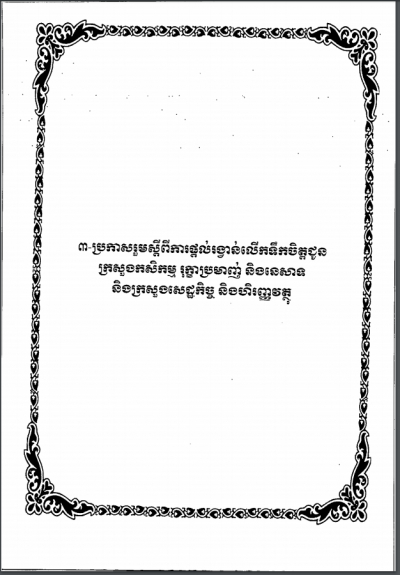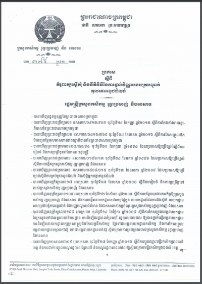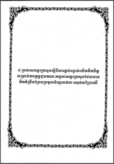 ប្រកាសអន្តរក្រសួង ស្តីពីការផ្តល់រង្វាន់លើកទឹកចិត្តសម្រាប់ឧបត្ថម្ភជូនគណកម្មាការអន្តរក្រសួង ដែលបានខិតខំប្រឹងប្រមូលចំណូលផល-អនុផលព្រៃឈើ
