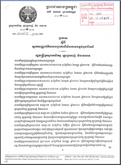 ប្រកាសស្តីពី ការតែងតាំងមន្ត្រីកម្មសិក្សា និងបែងចែកមន្ត្រីបច្ចេកទេស