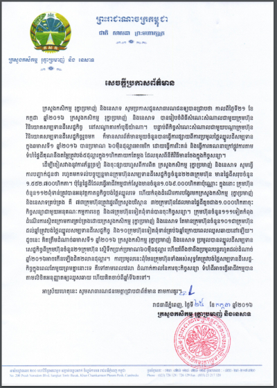 សេចក្តីប្រកាសព័ត៌មានអំពីពិធីសំណេះសំណាលជាមួយក្រុមហ៊ុនវិនិយោគសម្បទានដីសេដ្ឋកិច្ច ថ្ងៃទី២១ ខែកក្កដា ឆ្នាំ២០១៦