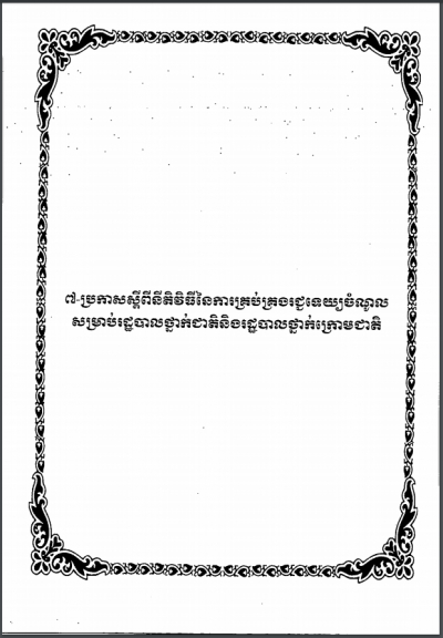 ប្រកាសស្តីពី នីតិវិធីការគ្រប់គ្រងរជ្ជទេយ្យចំណូល សម្រាប់រដ្ឋបាលថ្នាក់ជាតិ និងរដ្ឋបាលថ្នាក់ក្រោមជាតិ