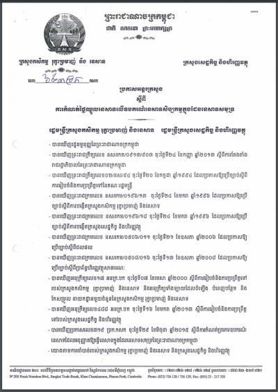ប្រកាសរួមស្តីពីការផ្តល់សេវាសាធារណៈរបស់ក្រសួងកសិកម្ម រុក្ខាប្រមាញ់ និងនេសាទ