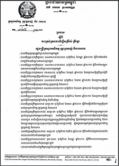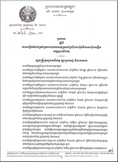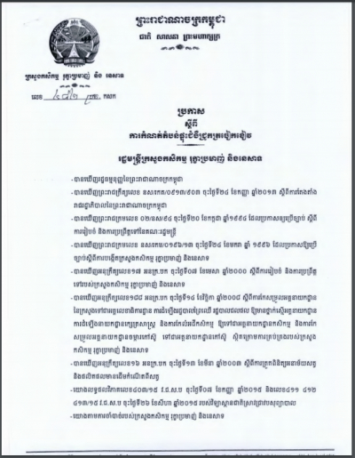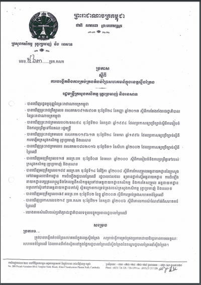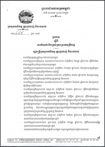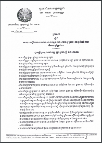 ប្រកាសស្តីពីការគ្រប់គ្រងសកម្មភាពជីកគាស់ ដឹកជញ្ជូន និងធ្វើអាជីវកម្ម រុក្ខជាតិ