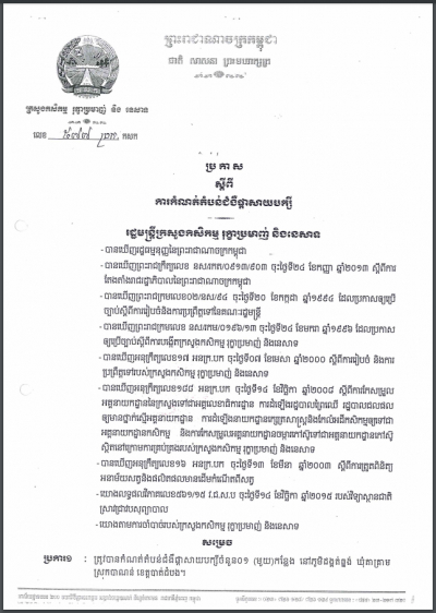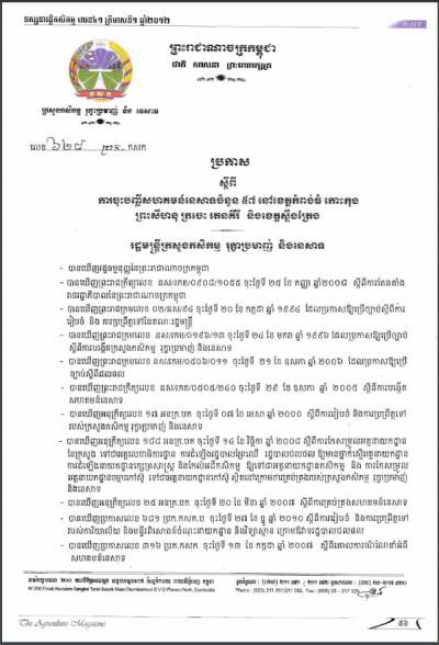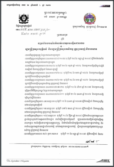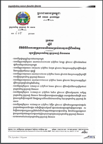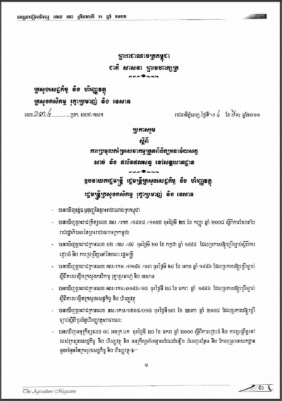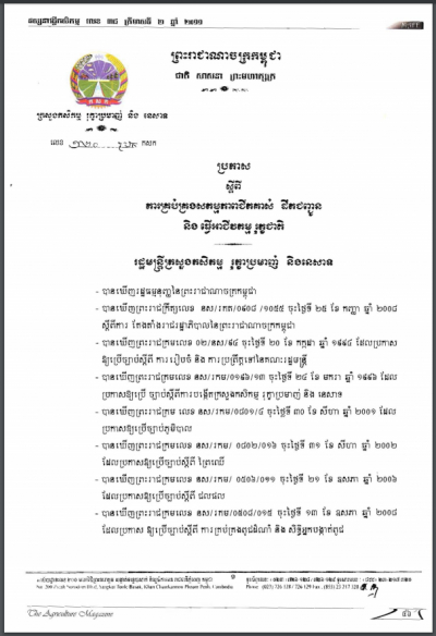 ប្រកាសស្តីពីនីតិវិធី និងការតម្រូវបមាណីយសម្រាប់ការចុះបញ្ជីជីកសិកម្ម(ត)