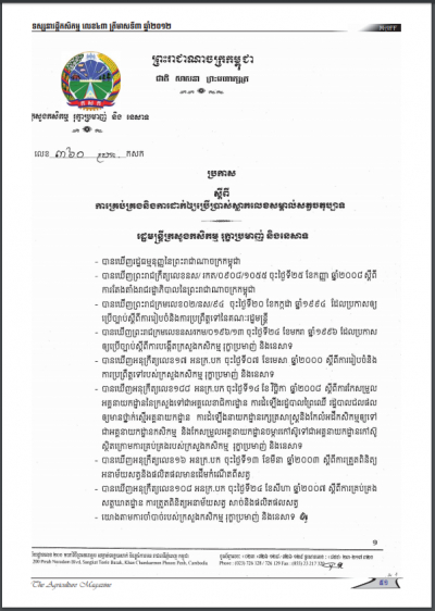 ប្រកាសស្តីពីការគ្រប់គ្រងនិងការដាក់អោយប្រើប្រាស់ស្លាកលេខសម្គាល់ សត្វចតុប្បាទ