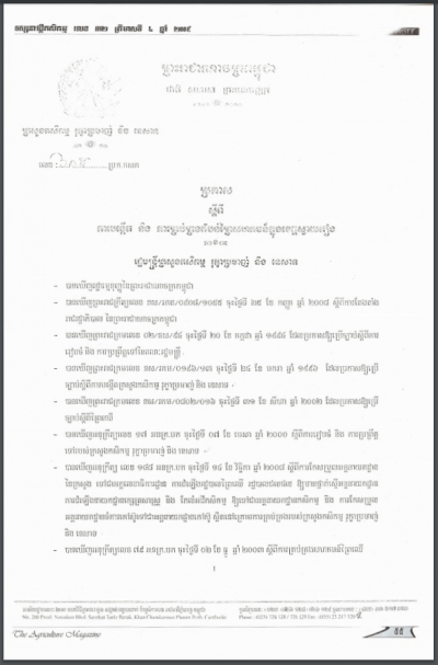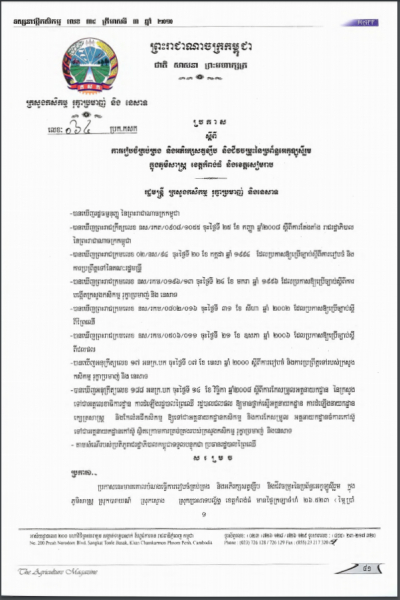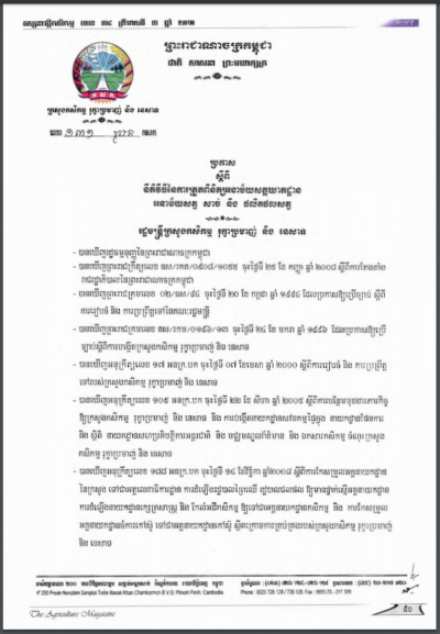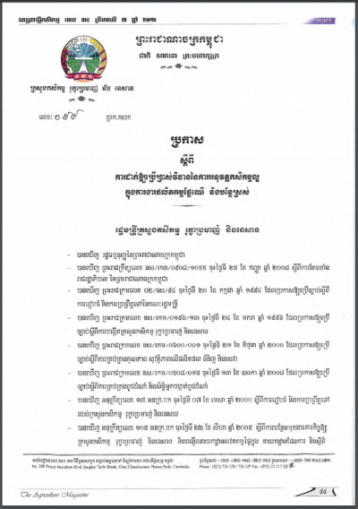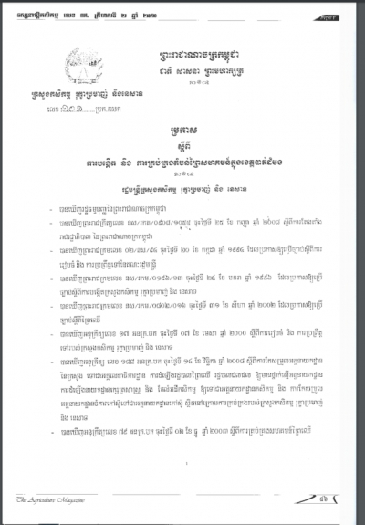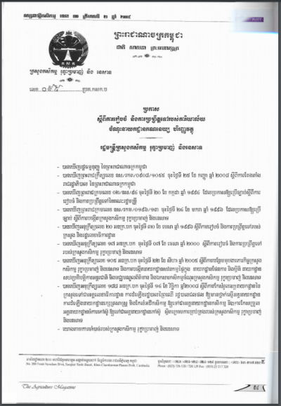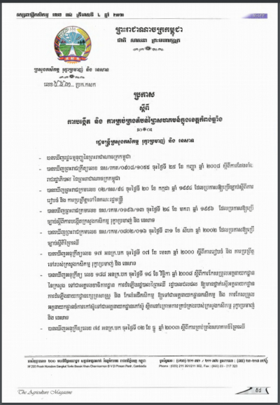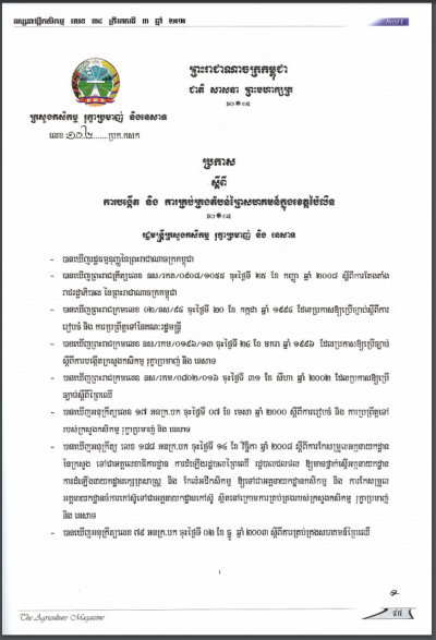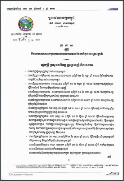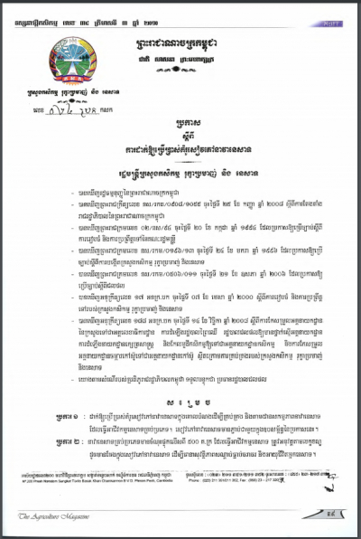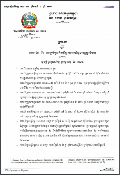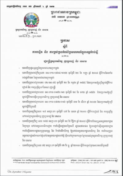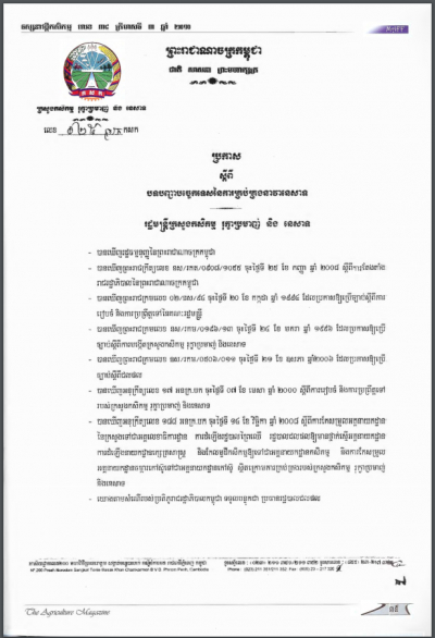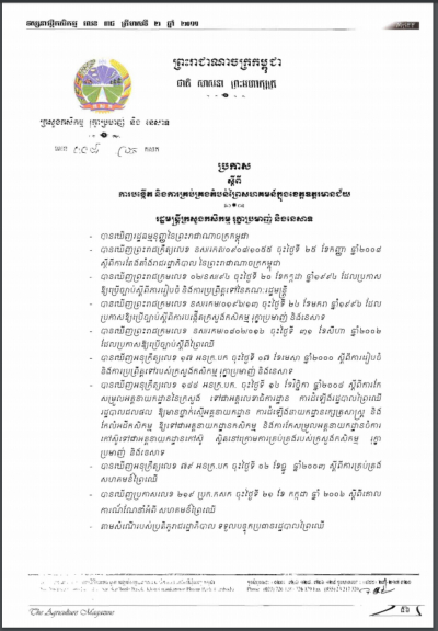 ប្រកាសស្តីពីការដាក់ឱ្យប្រើប្រាស់វិធាននៃការអនុវត្តកសិកម្មល្អ ក្នុងការងារផលិតកម្មផ្លែឈើ និងបន្លែស្រស់