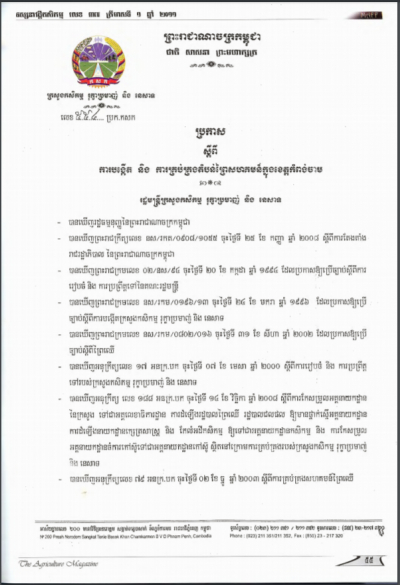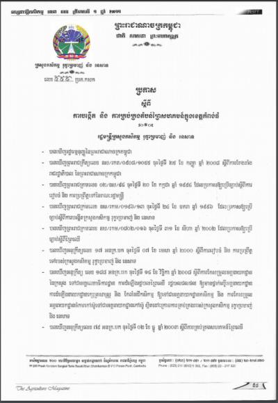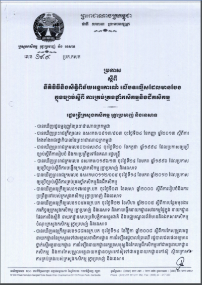 ប្រកាសស្តីពីនិតិវិធី និងសិទ្ធិពិន័យអន្តរការណ៍ លើបទល្មើសដែលមានចែងក្នុងច្បាប់ស្តីពី ការគ្រប់គ្រងថ្នាំកសិកម្មនិងជីកសិកម្ម