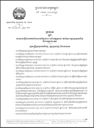 ប្រកាសស្តីពីការរៀបចំគ្រប់គ្រង និងអភិរក្សសត្វខ្សឹប និងជីវចម្រុះនៃប្រព័ន្ធអេកូឡូស៊ីរួម ក្នុងភូមិសាស្ត្រ ខេត្តកំពង់ធំ និងខេត្តសៀមរាប