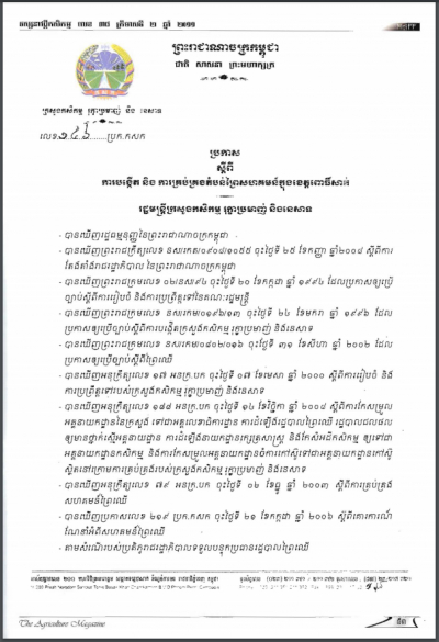 ប្រកាសស្តីពីការបង្កើត និងការគ្រប់គ្រងតំបន់ព្រៃសហគមន៍ក្នុងខេត្តកំពង់ស្ពឺ