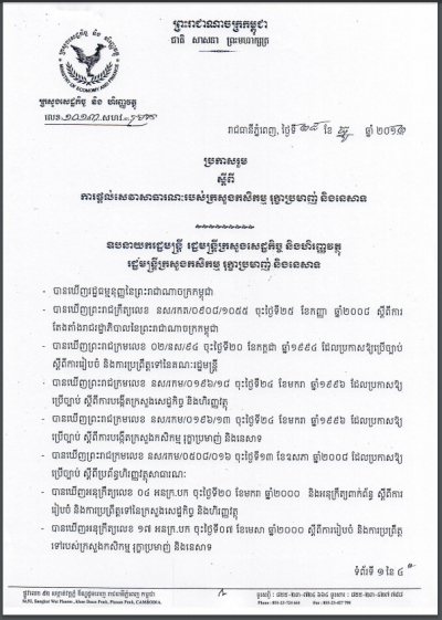 ប្រកាសរួមលេខ ១០១៣ សហវ ប្រ ក ស្តីពីការផ្តលសេវាសាធារណៈរបស់ក្រសួងកសិកម្ម រុក្ខាប្រមាញ់ និងនេសាទ
