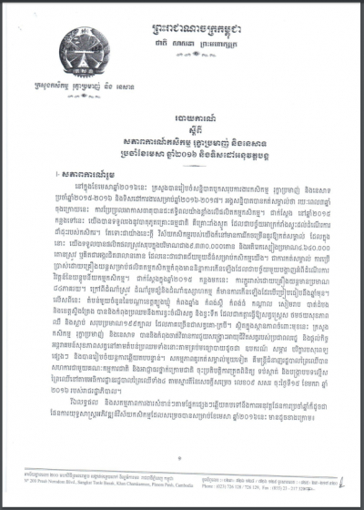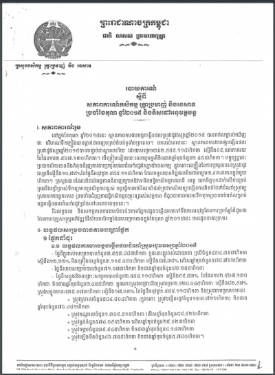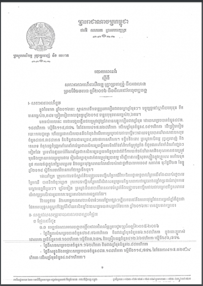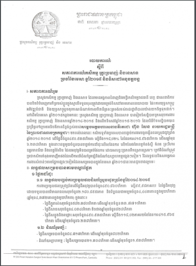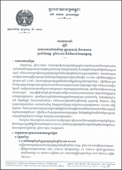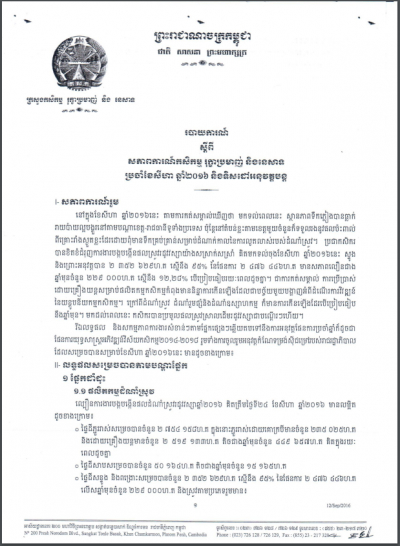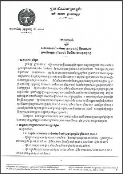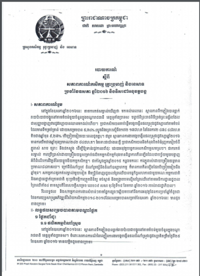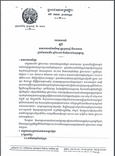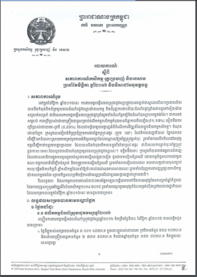 របាយការណ៍ស្តីពីសភាពការណ៍កសិកម្ម រុក្ខាប្រមាញ់ និងនេសាទប្រចាំឆមាសទី១ ឆ្នាំ២០១៦ និងទិសដៅអនុវត្តបន្ត