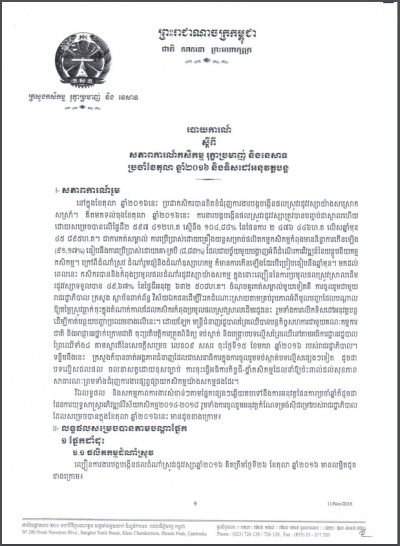របាយការណ៍ស្តីពី សភាពការណ៍កសិកម្ម រុក្ខាប្រមាញ់ និងនេសាទ ប្រចាំខែវិច្ឆិកា ឆ្នាំ២០១៦ និងទិសដៅអនុវត្តបន្ត