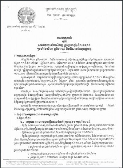 របាយការណ៍ស្តីពីសភាពការណ៍កសិកម្ម រុក្ខាប្រមាញ់ និងនេសាទប្រចាំត្រីមាសទី១ ឆ្នាំ២០១៦ និងទិសដៅអនុវត្តបន្ត
