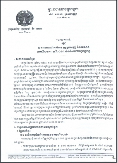 របាយការណ៍ស្តីពីសភាពការណ៍កសិកម្ម រុក្ខាប្រមាញ់ និងនេសាទ ប្រចាំខែមករា ឆ្នាំ២០១៦ និងទិសដៅអនុវត្តបន្ត