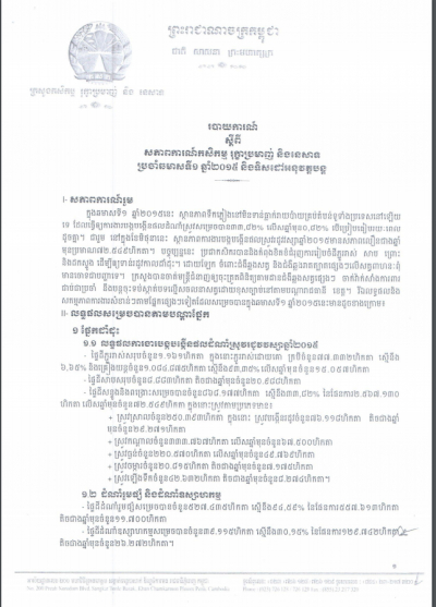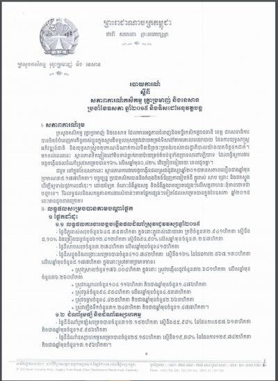 របាយការណ៍ស្តីពីសភាពការណ៍កសិកម្ម រុក្ខាប្រមាញ់ និងនេសាទ ប្រចាំឆមាសទី១ ឆ្នាំ២០១៥