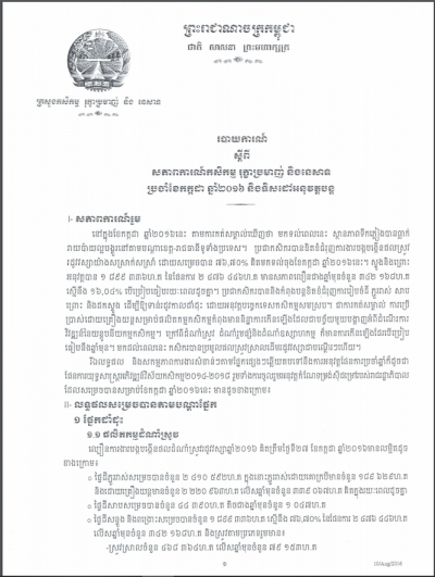 របាយការណ៍ស្តីពី សភាពការណ៍កសិកម្ម រុក្ខាប្រមាញ់ និងនេសាទ ប្រចាំខែសីហា ឆ្នាំ២០១៦ និងទិសដៅអនុវត្តបន្ត