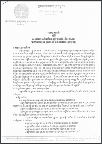របាយការណ៌សភាពការណ៍កសិកម្ម រុក្ខាប្រមាញ់ និងនេសាទ ប្រចាំ ៩ខែ ដើមឆ្នាំ ២០១៥