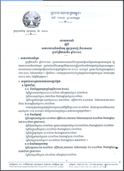 របាយការណ៍ស្តីពីសភាពការណ៍កសិកម្ម រុក្ខាប្រមាញ់ និងនេសាទ ប្រចាំឆមាសទី១ ឆ្នាំ២០១៤