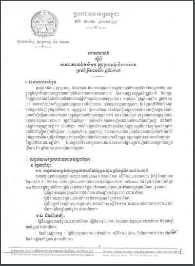 របាយការណ៍ស្តីពីសភាពការណ៍កសិកម្ម រុក្ខាប្រមាញ់ និងនេសាទ ប្រចាំត្រីមាសទី១ ឆ្នាំ២០១៥