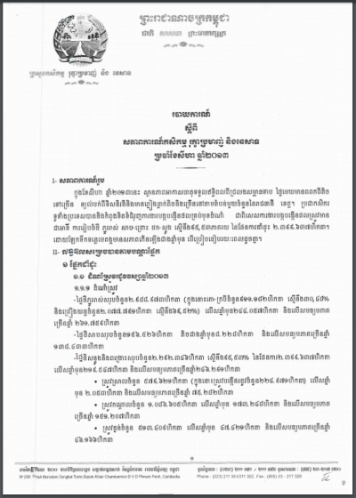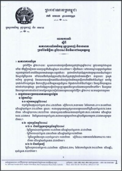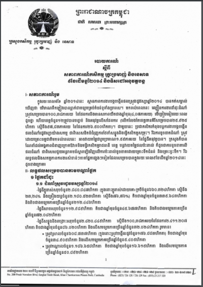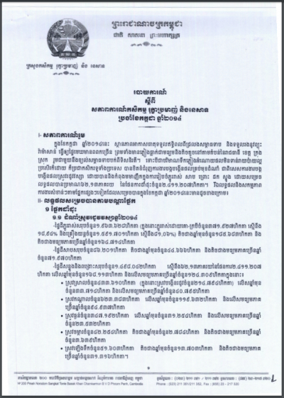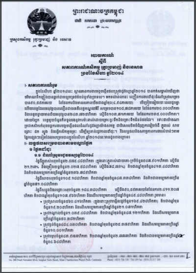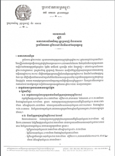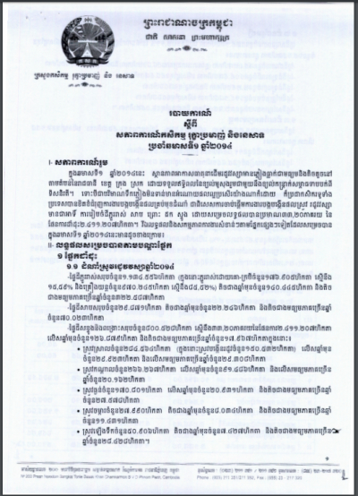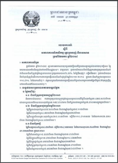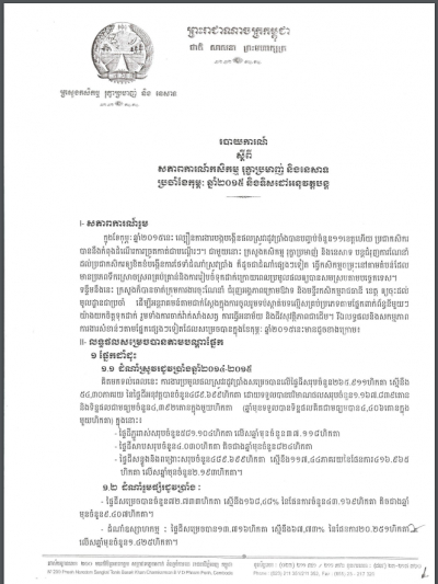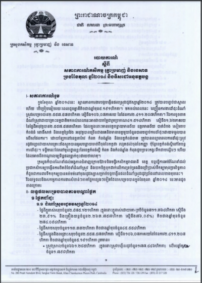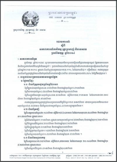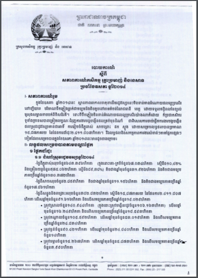 របាយការណ៍ស្តីពីសភាពការណ៍កសិកម្ម រុក្ខាប្រមាញ់ និងនេសាទ ប្រចាំ ៩ខែដើម ឆ្នាំ២០១៤