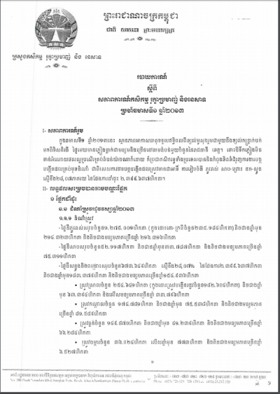 របាយការណ៍ស្តីពីសភាពការណ៍កសិកម្ម រុក្ខាប្រមាញ់ និងនេសាទ ប្រចាំឆមាសទី១ ឆ្នាំ២០១៣