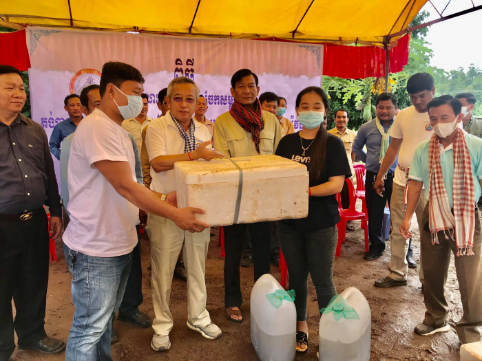 ថ្ងៃព្រហស្បតិ៍ ១០កើត ខែស្រាពណ៍ ឆ្នាំជូត ទោស័ក ព.ស. ២៥៦៤ ត្រូវនឹងព្រឹកថ្ងៃទី ៣០ ខែកក្កដា ឆ្នាំ២០២០ ឯកឧត្ដម អេង ជាសាន ប្រតិភូរាជរដ្ឋាភិបាលកម្ពុជា ទទួលបន្ទុកជា ប្រធានរដ្ឋបាលជលផល និងជាតំណាងដ៏ខ្ពង់ខ្ពស់របស់ ឯកឧត្តមរដ្ឋមន្ត្រី ក្រសួងកសិកម្មរុក្ខាប្រមាញ់ និងនេសាទ បានចូលរួមក្នុងពិធី ”​ សំណេះសំណាលនិងចែកសម្ភារ កូនកង្កែបពូជ កូនត្រីអណ្តែក តង់ប្លាស្ទិកនិងចំណីត្រី/កង្កែបសម្រាប់អនុវត្តសកម្មភាពវារីវប្បកម្មក្នុងអំឡុងពេលនៃការឆ្លងរាលដាលជម្ងឺកូវីដ ១៩ ”​។
