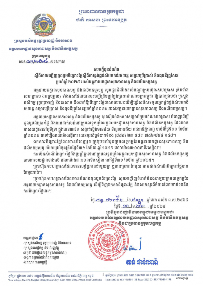 សេចក្តីជូនដំណឹង ការជ្រើសរើសក្រុមទីប្រឹក្សាផ្នែករចនាវិស្វកម្ម និងត្រួតពិនិត្យការសាងសង់ Engineering Design and Construction Supervision Consultants (CAM/MAFF CLHVIP-CS04)