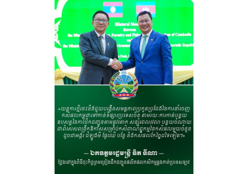 នារសៀលថ្ងៃទី២៥ ខែមករា ឆ្នាំ២០២៦ ឯកឧត្តម ឌិត ទីណា រដ្ឋមន្រ្តីក្រសួងកសិកម្ម រុក្ខាប្រមាញ់ និងនេសាទ បានបន្តអញ្ជើញនាំឯកឧត្តមបណ្ឌិត Linkham DOUANGSAVANH រដ្ឋមន្រ្តីក្រសួងកសិកម្មនិងបរិស្ថាន...