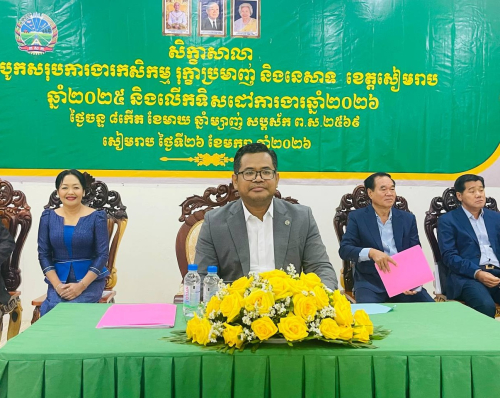 នៅថ្ងៃទី២៦ ខែមករា ឆ្នាំ២០២៦ ឯកឧត្តម ឃុន សាវឿន រដ្ឋលេខាធិការក្រសួងកសិកម្ម រុក្ខាប្រមាញ់ និងនេសាទ អញ្ជើញជាអធិបតីភាព ក្នុងសិក្ខាសាលាបូកសរុបលទ្ធផលការងារឆ្នាំ២០២៥...