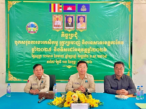 នៅថ្ងៃទី១២ ខែកុម្ភៈ ឆ្នាំ២០២៦ ឯកឧត្តម ហាស់ សារ៉េត រដ្ឋលេខាធិការ តំណាងខ្ពង់ខ្ពស់ឯកឧត្តម ឌិត ទីណា រដ្ឋមន្រ្តីក្រសួងកសិកម្ម រុក្ខាប្រមាញ់ និងនេសាទ បានអញ្ជើញជាអធិបតីភាពក្នុងកិច្ចប្រជុំបូកសរុបលទ្ធផលការងារមន្ទីរកសិកម្ម...