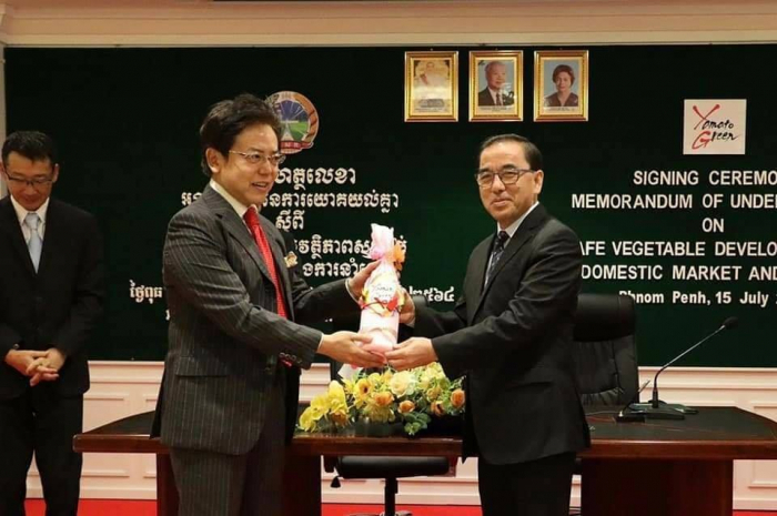 នៅទីស្តីការក្រសួងកសិកម្ម រុក្ខាប្រមាញ់ និងនេសាទ នាព្រឹកថ្ងៃពុធ ១០រោច ខែអាសាឍ ឆ្នាំជូត ទោស័ក .២៥៦៤ ត្រូវនឹងថ្ងៃទី១៥ ខែកក្កដា ឆ្នាំ២០២០ មានរៀបចំពិធីចុះហត្ថលេខាលើអនុស្សរណនៃការយោគយល់គ្នាស្តីពី "ការអភិវឌ្ឍបន្លែសុវត្ថិភាពសម្រាប់ទីផ្សារក្នុងស្រុក និងការនាំចេញរវាងក្រសួងកសិកម្ម រុក្ខាប្រមាញ់ និងនេសាទ ជាមួយក្រុមហ៊ុន Yamato Green Co., Ltd ដែលពិធីដ៏មានសារសំខាន់នេះស្ថិតក្រោមអធិបតីភាពឯកឧត្តមរដ្ឋមន្រ្តី វេង សាខុន និងឯកឧត្តម Masahiro Mikami ឯកអគ្គរាជទូតជប៉ុន។ ក្នុងពិធីនេះក៏មានការអញ្ជើញចូលរួម ផងដែរពីសំណាក់ឯកឧត្តមរដ្ឋលេខាធិការ អនុរដ្ឋលេខាធិការ ឯកឧត្តមប្រតិភូរាជរដ្ឋាភិបាលកម្ពុជាទទួលបន្ទុកជាអគ្គនាយកនៃអគ្គនាយកដ្ឋានកសិកម្ម តំណាងអង្គការ JICA ប្រចាំកម្ពុជា Dr. Nabeshima Katsuhito (ស្ថាបនិក និងជានាយកក្រុមហ៊ុនដៃគូអភិវឌ្ឍ វិស័យឯកជនជប៉ុន និងកម្ពុជា និងមន្រ្តីពាក់ព័ន្ធមួយចំនួនទៀត។