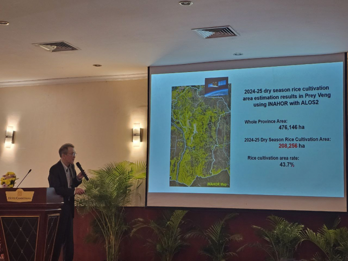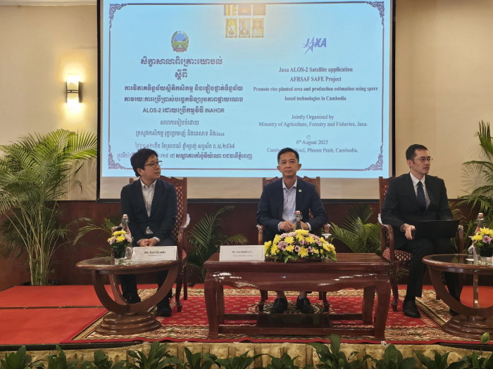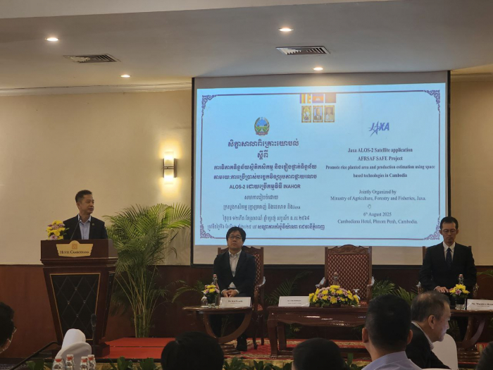 ថ្ងៃពុធ ១២កើត ខែស្រាពណ៍ ឆ្នាំម្សាញ់ សប្តស័ក ព.ស.២៥៦៩ ត្រូវនឹងថ្ងៃទី៦ ខែសីហា ឆ្នាំ២០២៥ នៅសណ្ឋាគារកាំបូឌីយ៉ាណា រាជធានីភ្នំពេញ នាយកដ្ឋានផែនការ និងស្ថិតិ បានសហការជាមួយអង្គការ JAXA និងក្រសួងកសិកម្ម រុក្ខាប្រមាញ់ និងនេសាទ ប្រទេសជប៉ុន បានរៀបចំសិក្ខាសាលាពិគ្រោះយោបល់ ដោយមានការអញ្ជើញចូលរួមអង្គភាពជំនាញ និងមន្ទីរកសិកម្មរុក្ខាប្រមាញ់ និងនេសាទ ខេត្តកំពត និងខេត្តព្រៃវែង ក្រោមអធិបតីភាព លោក ហុក គឹមធួន ប្រធាននាយកដ្ឋានផែនការ និងស្ថិតិ។ គោលបំណងសិក្ខាសាលាពិគ្រោះយោបល់លើការផ្ទៀងផ្ទាត់ផ្ទៃដីផលិតកម្មដំណាំស្រូវរដូវប្រាំង តាមរយៈកម្មវិធី INAHOR ដោយប្រើប្រាស់រូបភាពផ្កាយរណប ALOS-2 របស់ប្រទេសជប៉ុន ជាមួយទិន្នន័យរដ្ឋបាលរបស់មន្ទីរកសិកម្ម រុក្ខាប្រមាញ់ និងនេសាទខេត្តកំពត និងខេត្តព្រៃវែង។