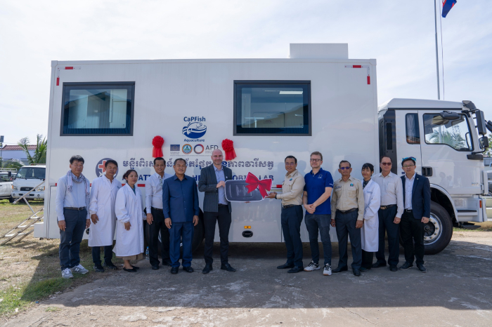នៅព្រឹកថ្ងៃទី១៥ ខែធ្នូ ឆ្នាំ២០២៥ ឯកឧត្តម ប្រាក់ ដាវីដ រដ្ឋលេខាធិការ ក្រសួងកសិកម្ម រុក្ខាប្រមាញ់ និងនេសាទ អញ្ជើញជាអធិបតីភាពក្នុងកម្មវិធី «ពង្រឹងការគ្រប់គ្រងជលផលសមុទ្រតាមរយៈការតាមដាន ត្រួតពិនិត្យ និងការឃ្លាំមើលតាមបែបឌីជីថល» និងពិធីកាត់ខ្សែបូរ ប្រគល់មន្ទីរពិសោធន៍ចល័តផ្នែកសុខភាពវារីសត្វ នៅខេត្តព្រះសីហនុ។