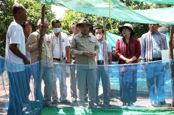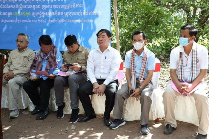 នៅព្រឹកថ្ងៃអាទិត្យ ៦កើត ខែស្រាពណ៍ ឆ្នាំជូត ទោស័ក ពស២៥៦៤ ត្រូវនឹងថ្ងៃទី២៦ ខែកក្កដា ឆ្នាំ២០២០ ឯកឧត្តម វេង សាខុន រដ្ឋមន្រ្តីក្រសួងកសិកម្ម រុក្ខាប្រមាញ់ និងនេសាទ រួមដំណើរដោយ ឯកឧត្តម ប្រាក់ សុវណ្ណ អភិបាលនៃគណ:អភិបាលខេត្តព្រះវិហារ និងសហការី បានអញ្ជើញចុះជួបសំណេះសំណាលជាមួយប្រជាកសិករ និងចែកតង់ផ្លាស្ទិក កូនត្រីអណ្តែង កូនកង្កែប និងចំណីត្រី ដល់កសិករចំនួន ៥០គ្រួសារ នៅភូមិពោធិិ៍ឃឿន ឃុំពោធិ៍ ស្រុកត្បែងមានជ័យ ខេត្តព្រះវិហារ។