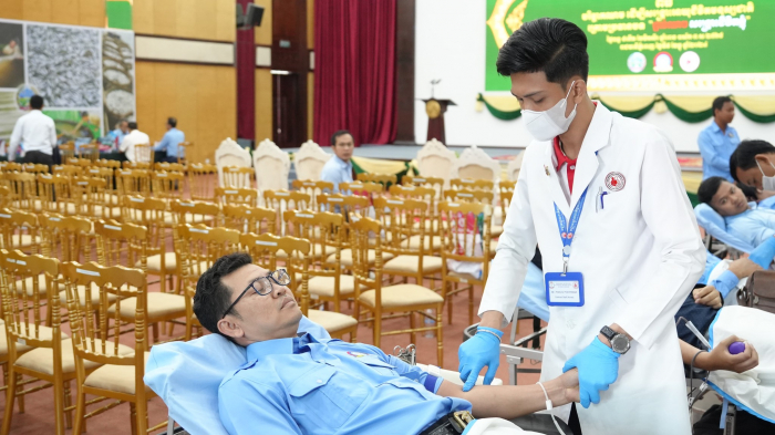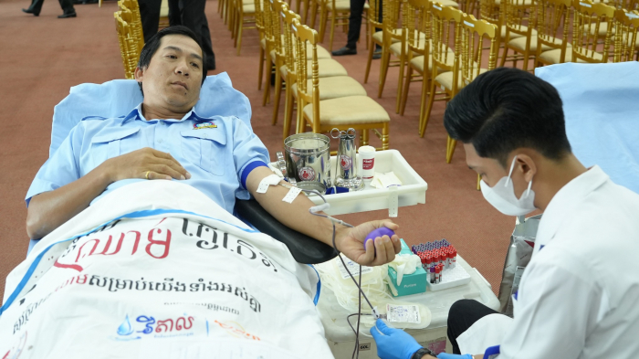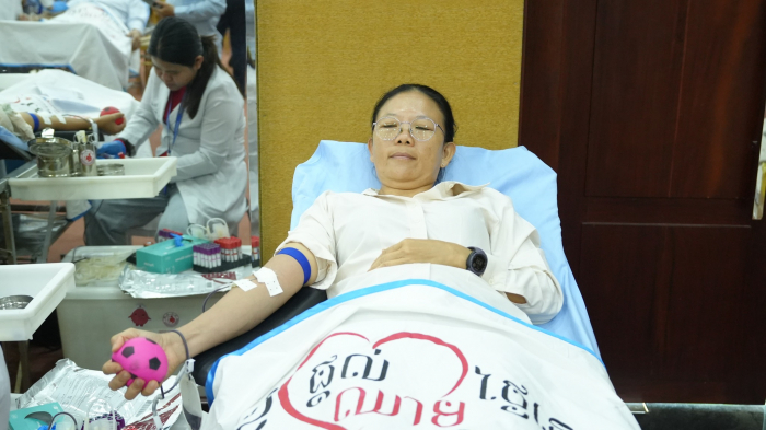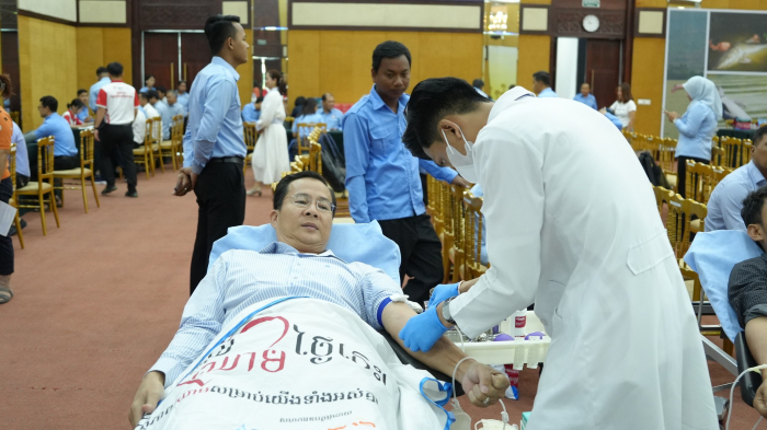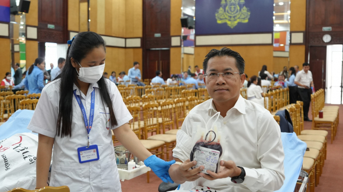 ឯកឧត្តមរដ្ឋលេខាធិការប្រចាំការ អុឹម ស៊ីថុល តំណាងដ៏ខ្ពង់ខ្ពង់ឯកឧត្តមរដ្ឋមន្ត្រី ឌិត ទីណា អញ្ជើញជាអធិបតីភាពក្នុងពិធីបរិច្ចាគឈាមក្រោមប្រធានបទ «ផ្តល់ឈាម សង្គ្រោះជីវិតខ្ញុំ» លើកទី៤