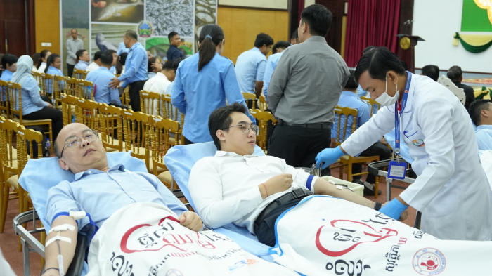 នៅព្រឹកថ្ងៃទី០៩ ខែធ្នូ ឆ្នាំ២០២៤ ឯកឧត្តម អុឹម ស៊ីថុល រដ្ឋលេខាធិការប្រចាំការនៃក្រសួងកសិកម្ម រុក្ខាប្រមាញ់ និងនេសាទ និងជាតំណាងដ៏ខ្ពង់ខ្ពង់ឯកឧត្តមរដ្ឋមន្ត្រី ឌិត ទីណា បានអញ្ជើញជាអធិបតីភាពក្នុងពិធីបរិច្ចាគឈាមក្រោមប្រធានបទ «ផ្តល់ឈាម សង្គ្រោះជីវិតខ្ញុំ» លើកទី៤ ដែលមានការចូលរួមពីមន្ដ្រីក្រោមឱវាទនៃក្រសួងជិត៣០០នាក់ នៅទីស្តីការក្រសួងកសិកម្ម រុក្ខាប្រមាញ់ និងនេសាទ។