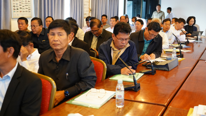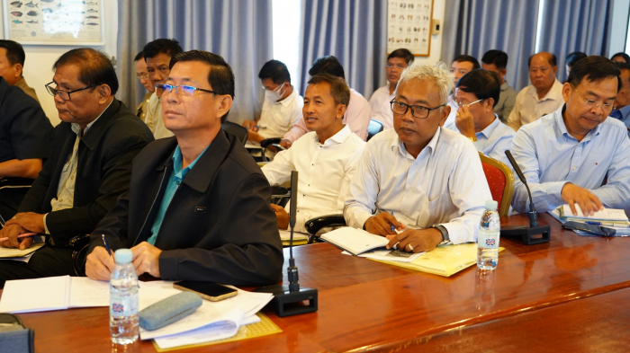 ឯកឧត្តមរដ្ឋលេខាធិការ បានណែនាំអង្គប្រជុំ ពិភាក្សាដោយផ្តោតលើបញ្ហាសំខាន់ៗ ដូចជាការងារអភិរក្សជលផល ការងារវារីវប្បកម្ម ការបង្ក្រាបបទល្មើស ដើម្បីកំណត់បញ្ហាប្រឈម ដំណោះស្រាយ និងវិធានការគន្លឹះ ដើម្បីគ្រប់គ្រងអភិរក្ស និងអភិវឌ្ឍន៍ធនធានជលផលប្រកបដោយប្រសិទ្ធភាព។