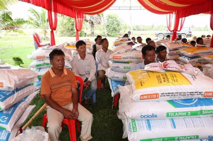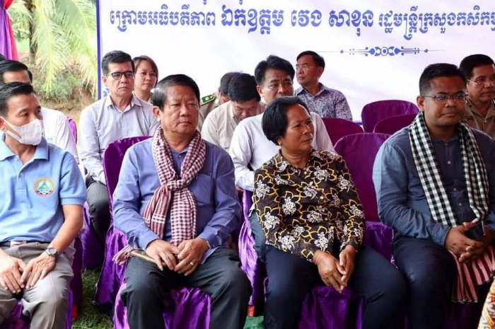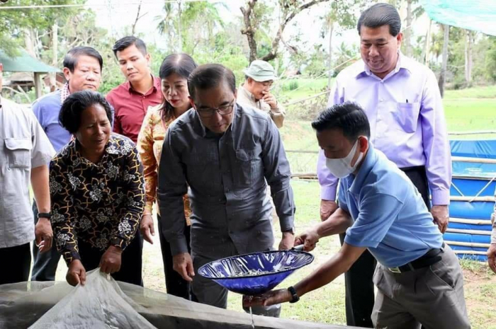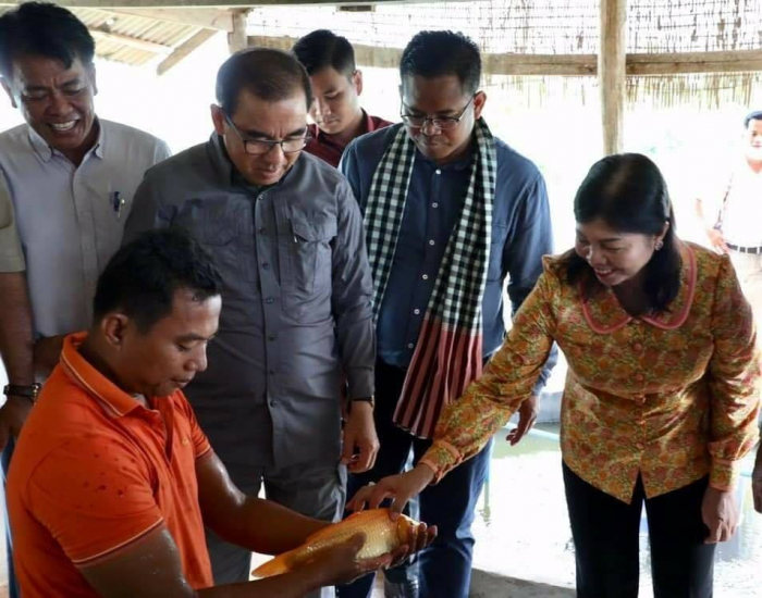 នាព្រឹកថ្ងៃសៅរ៍ ៤រោច ខែស្រាពណ៏ ឆ្នាំជូត ទោស័ក ព.ស. ២៥៦៤ ត្រូវនឹងថ្ងៃទី៨ ខែសីហា ឆ្នាំ២០២០ ឯកឧត្តមរដ្ឋមន្រ្តី វេង សាខុន អមដំណើរជាមួយដោយឯកឧត្តម ជាវ តាយ អភិបាលនៃគណអភិបាលខេត្តកំពត ឯកឧត្តមរដ្ឋលេខាធិការ អនុរដ្ឋលេខាធិការ ឯកឧត្តមប្រតិភូរាជរដ្ឋា ភិបាលកម្ពុជាទទួលបន្ទុកជាប្រធានរដ្ឋបាលជលផល លោកប្រធានមន្ទីរកសិកម្ម រុក្ខាប្រមាញ់ និងនេសាទខេត្តតាកែវ និងខេត្តកំពត មន្រ្តីជំនាញ និងអាជ្ញាធរមូលដ្ឋាន បានអញ្ជើញមកជួបសំណេះ សំណាល សាកសួរសុខទុក្ខ និងនាំយកកូនត្រីអណ្តែង កូនកង្កែប និងសម្ភារចិញ្ចឹមដូចជាតង់ និងចំណីមកចែកជូនកសិករចំនួន ៥០គ្រួសារ។ ពិធីនេះបានរៀបចំនៅផ្ទះបងស្រី សែត ធី ដែលមានអាជីពជាអ្នកបង្កាត់ ភ្ញាស់ និងចិញ្ចឹមត្រី(កាបសាមញ្ញ កាបឥណ្ឌា កាបរាហ៊ូ កាបស ទីឡាព្យា និងត្រីឆ្ពិន) នៅភូមិត្រពាំងត្នោត ឃុំដំបូកខ្ពស់ ស្រុកអង្គរជ័យ ខេត្តកំពត។