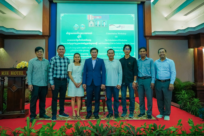នាថ្ងៃពុធ ៤កើត ខែផល្គុន ឆ្នាំថោះបញ្ចស័ក ព.ស. ២៥៦៧ ត្រូវនឹងថ្ងៃទី១៣ ខែមីនា ឆ្នាំ២០២៤ នាយកដ្ឋានកសិ-ឧស្សាហកម្ម នៃក្រសួងកសិកម្ម រុក្ខាប្រមាញ់ និងនេសាទ បានសហការជាមួយអង្គការអភិវឌ្ឍន៍អន្តរជាតិអាល្លឺម៉ង់ (GIZ) បានរៀបចំសិក្ខាសាលាពិគ្រោះយោបល់ ស្តីពី ការគណនាថ្លៃដើមនៃផលិតកម្ម និងការកែច្នៃក្នុងខ្សែច្រវាក់តម្លៃគ្រាប់ស្វាយចន្ទី ដឹកនាំដោយលោកបណ្ឌិត ចាយ ជីម ប្រធាននាយកដ្ឋានកសិ-ឧស្សាហកម្ម និងមានការអញ្ជើញចូលរួមពីលោក ហៃ វាសនា អនុប្រធានមន្ទីរកសិកម្ម រុក្ខាប្រមាញ់ និងនេសាទខេត្តសៀមរាប លោក លូកាស់ សាល អនុប្រធានគម្រោង CRAS តំណាងអង្គការ GIZ ព្រមទាំងមានការអញ្ជើញចូលរួមពីសហគ្រាសកែច្នៃគ្រាប់ស្វាយចន្ទី សហគមន៍កសិកម្ម អ្នកប្រមូលទិញ និងកសិករដាំដុះដំណាំស្វាយចន្ទី នៅសណ្ឋាគាររី ខេត្តសៀមរាប។ សិក្ខាសាលាពិគ្រោះយោបល់នេះមានគោលបំណងដើម្បី ១).បង្ហាញអំពីលទ្ធផលបឋមដែលបានរកឃើញកន្លងមកដោយលម្អិតទៅលើការគណនាថ្លៃដើមនៃផលិតកម្ម និងការកែច្នៃក្នុងខ្សែច្រវាក់តម្លៃគ្រាប់ស្វាយចន្ទី ដោយនាយកដ្ឋានកសិ-ឧស្សាហកម្ម និង២).ប្រមូលធាតុចូលពីអ្នកពាក់ព័ន្ធដើម្បីកែលម្អចំណុចខ្វះខាត និងរៀបចំជាឯកសារបច្ចេកទេសសម្រាប់ជំនួយដល់ការអភិវឌ្ឍន៍វិស័យស្វាយចន្ទីនៅកម្ពុជា។